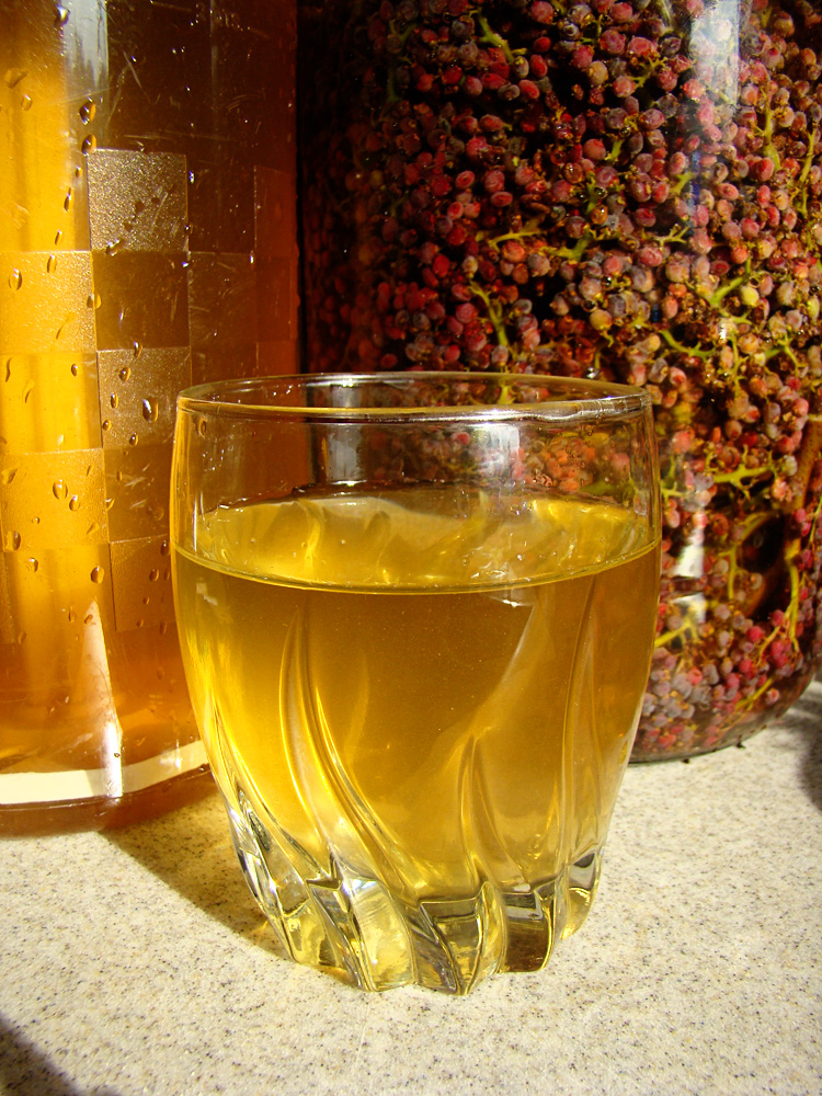 After a few hours, the water will be a beautiful light amber color. Strain the water through a fine mesh tea sieve as you pour it out of the jar. It will be cloudy for a while. Don't worry about that. We got just over 2 quarts of juice from each of these jars.
